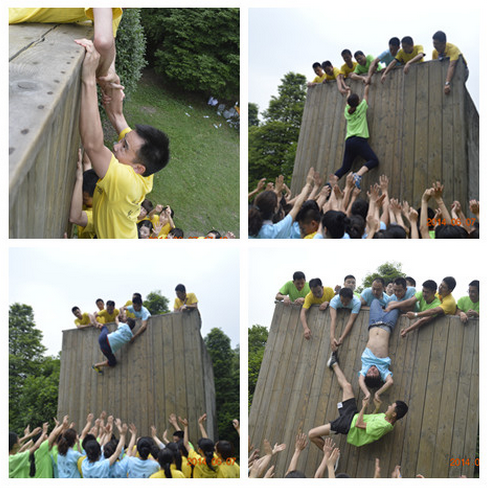 拓展訓練中員工們積極發揮自身優勢,團結協作順利完成了“急速60秒”、“卓越圈”、“畢業墻”等多項培訓科目。