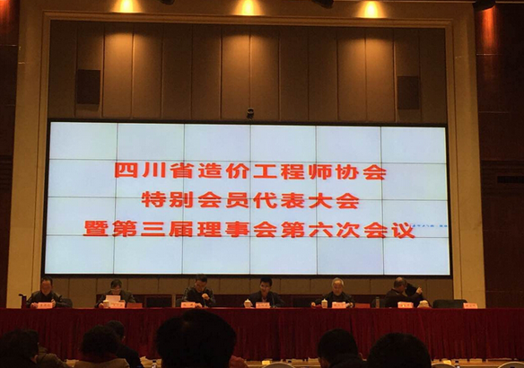 2015年12月29日,由四川省造價工程師協(xié)會主辦的特別會員代表大會暨第三屆理事會第六次會議在成都市新華賓館會議中心隆重召開。我司造價咨詢部運營總經(jīng)理參加了本次會議。